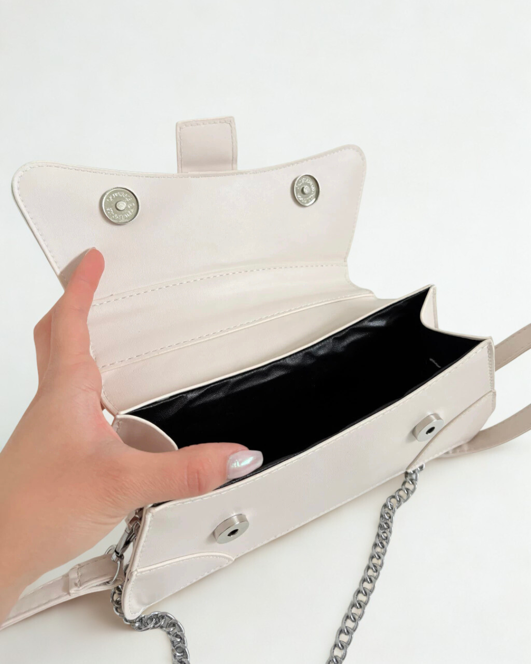 La Amalfi es un modelo rígido, elegante y minimalista, ideal para elevar cualquier look con un toque moderno. Con hebilla decorativa y broche imantado oculto que asegura tus esenciales sin perder estilo.