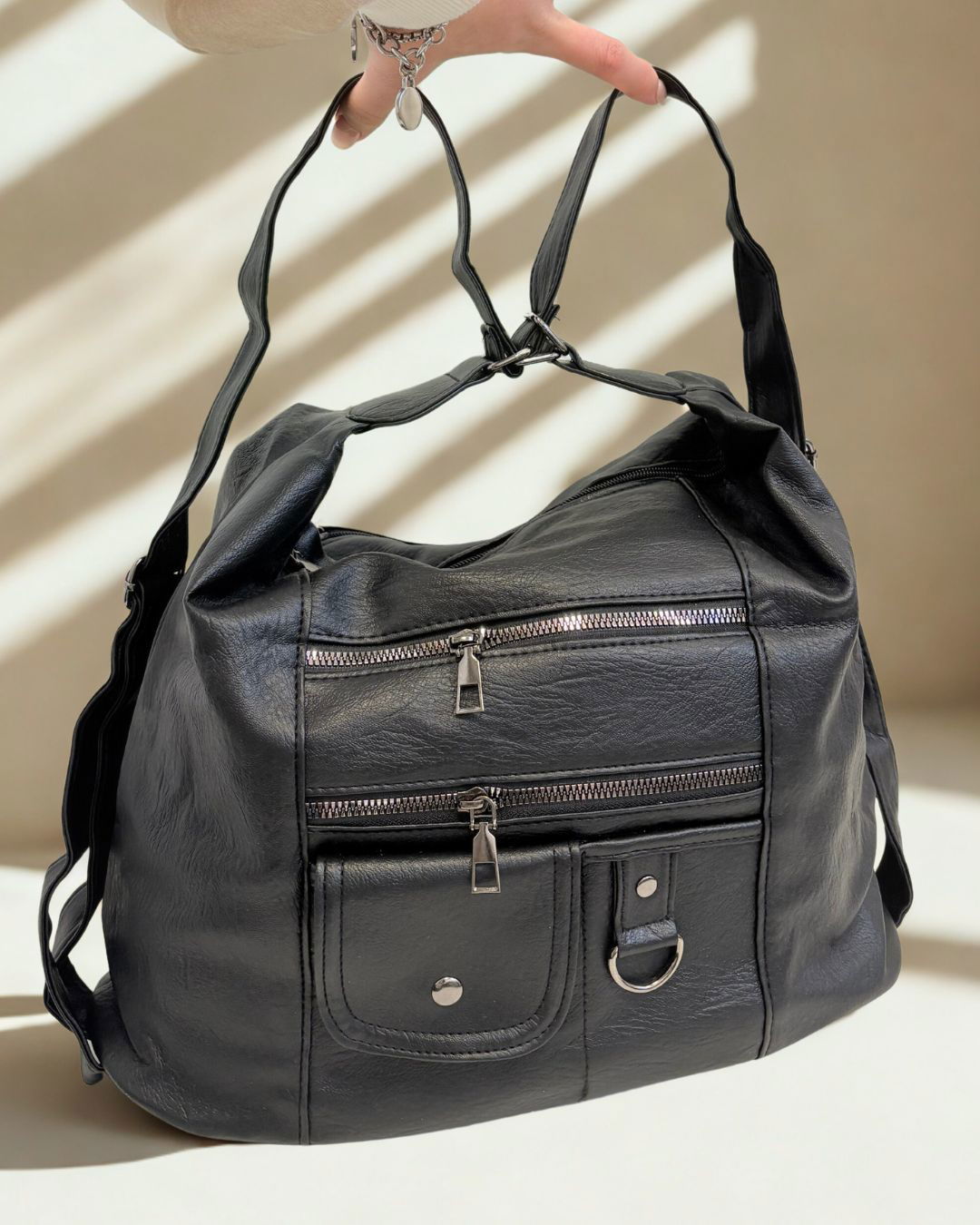 Versátil y lista para todo: la Siena se puede usar como cartera o mochila gracias a su correa regulable que se adapta al momento. Está forrada por dentro, cuenta con 5 bolsillos externos para tener todo a mano y 2 bolsillos internos para organizar lo esencial.